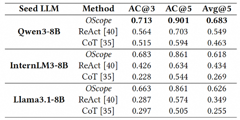 在阿里巴巴真实生产数据集上的实验表明,OScope在Top-5准确率(AC@5)上达到90%准确率,显著优于基线方法,验证了其在工业场景中的有效性与实用性。