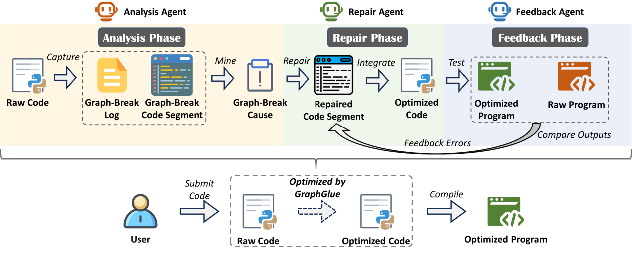 图1为GraphGlue的总体流程,分为分析、修复、反馈三个阶段: