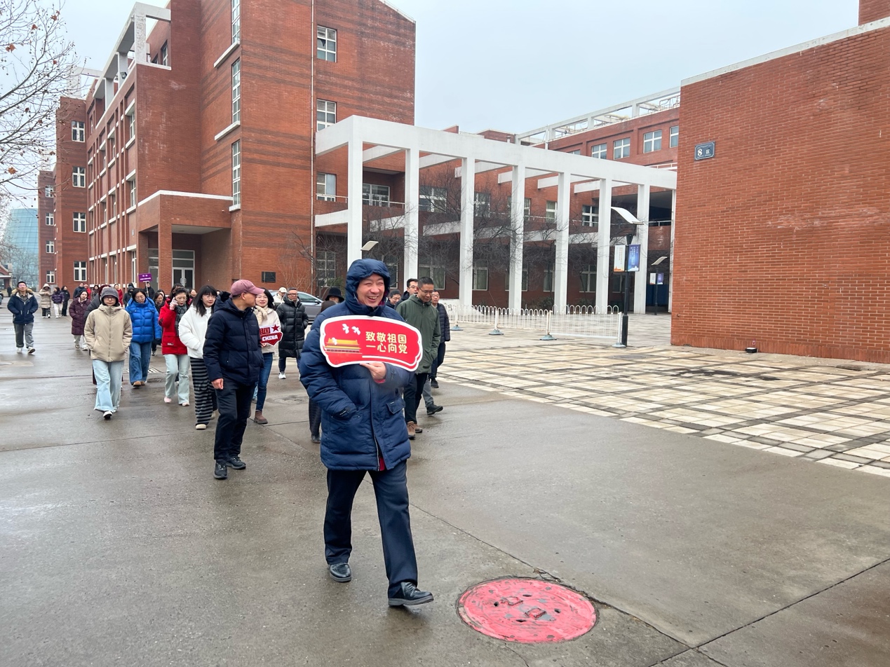 大家手持 “致敬祖国,一心向党”,“女王驾到”等趣味手牌,在春日的校园中阔步前行,步伐矫健、笑语盈盈。沿途的红砖建筑与大家的热情相映成趣,既舒展了身心,也增进了同事间的交流与情谊。校工会为每位参与者准备了精美礼品,让大家在运动中收获了满满的节日祝福。