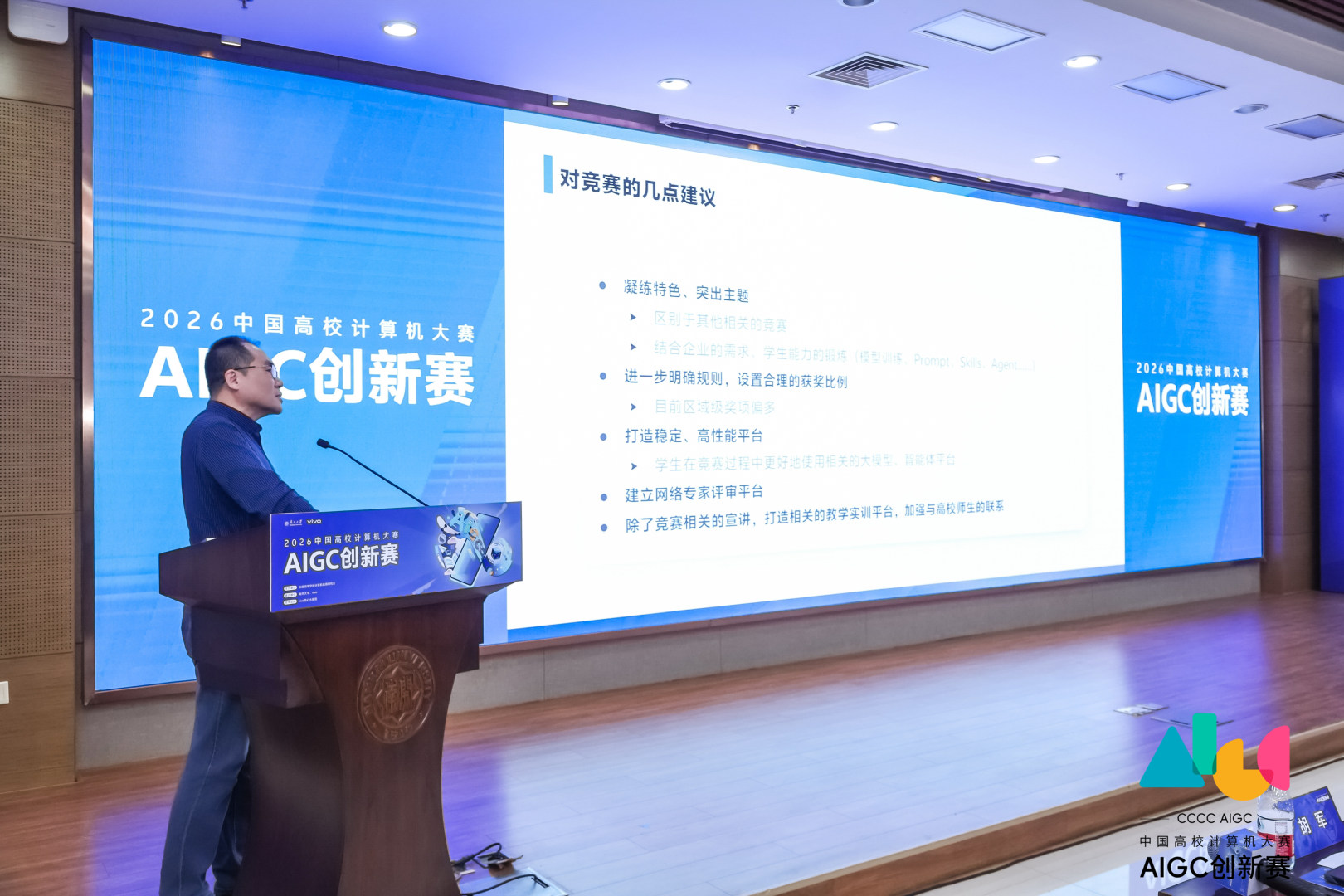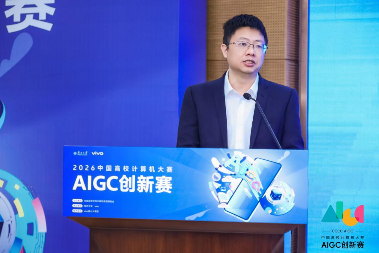 (通讯员 李彪)3月15日,第三届(2026)“中国高校计算机大赛-AIGC创新赛”启动仪式在我校津南校区举行。本次大赛由全国高等学校计算机教育研究会主办、伟德源自英国1946与vivo公司联合承办,伟的国际1946bv具体实施,是“中国高校计算机大赛”八大竞赛单元之一,旨在汇聚青年创新力量,共同探索人工智能生成内容在应用创新和内容创作上的无限可能,推动产学研深度融合。