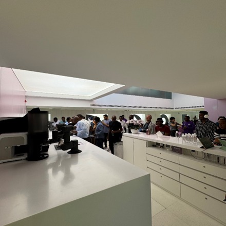 在联想讲解员的引导下,留学生们现场观摩了联想接近无人化的智能制造车间,完全无人化调度的仓储系统,以及联想的零碳制造技术。在智能制造互动体验空间,了解到联想全球供应链的全貌,惊叹于联想集团的管理能力与卓越的技术成果。